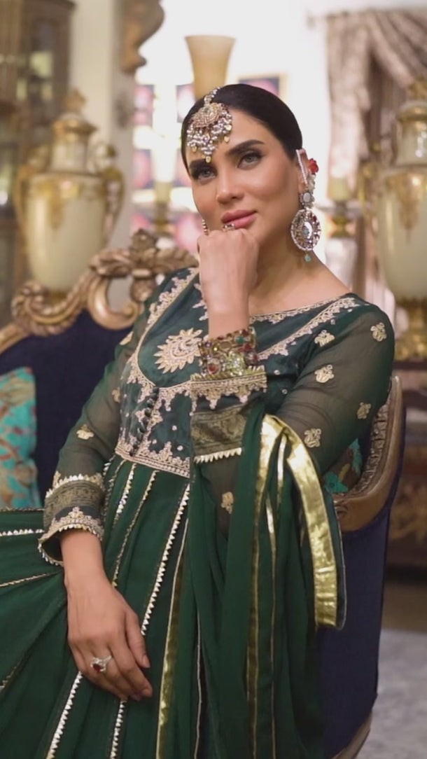 . An Absolute Show Stopper. The 'Zohra Jabeen' Kalidaar Pishwas Is Designed To Give A Slender Waistline An Extra Flairing Kalis For That Unforgetable Twist And Stunning Silhoutte.