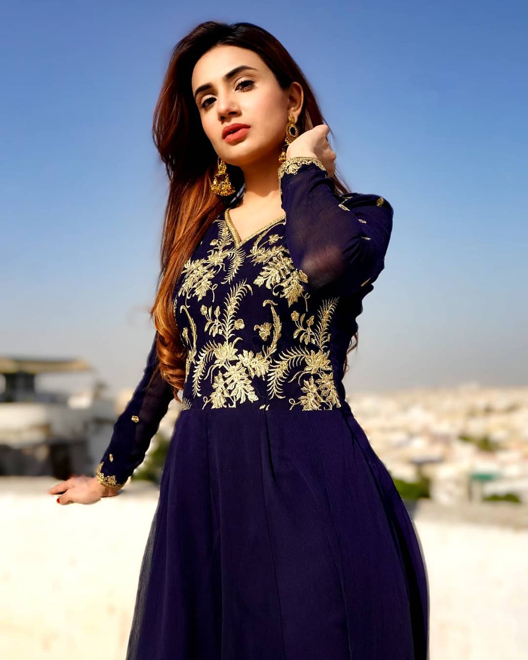 . It Comes With Pure Chiffon 'Deep Blue' Dupatta, Heavily Embellished With Four Sided Lappa & Gota Finishing.